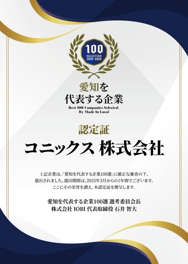 愛知を代表する企業100選 コニックス特集ページ