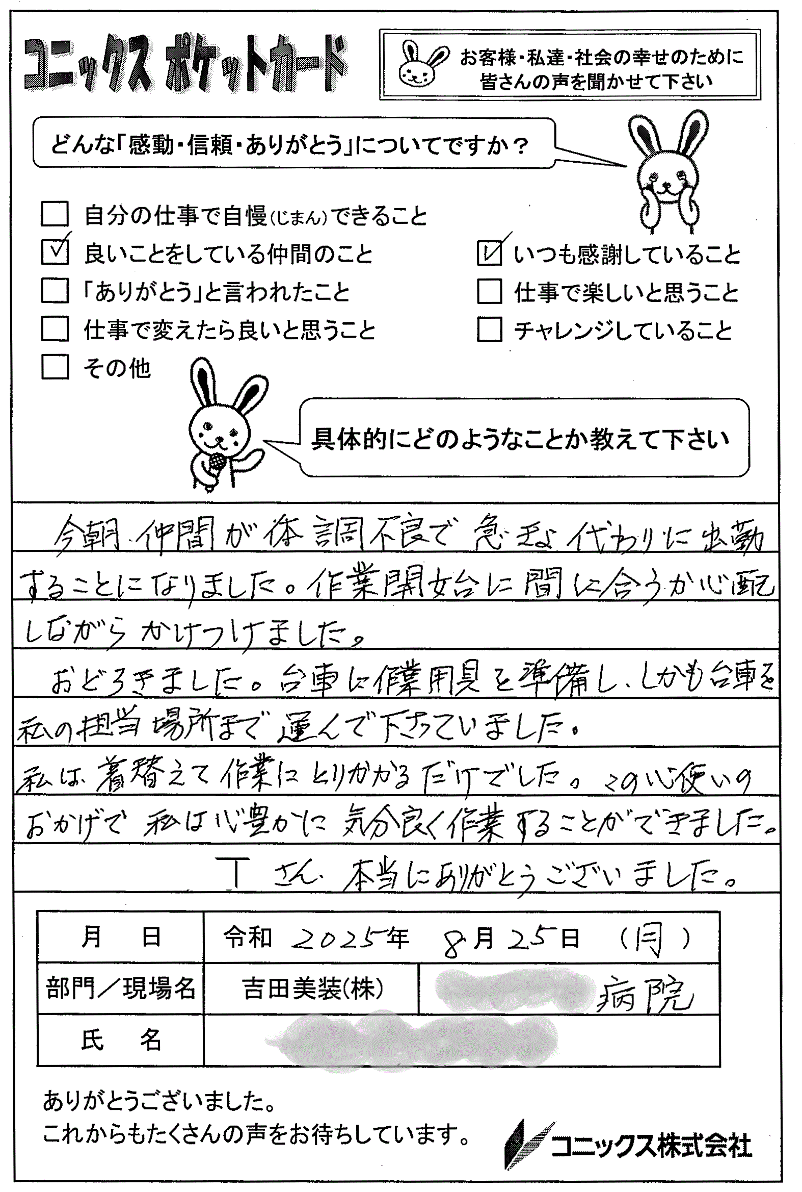 このような思いやりの心は、職場の雰囲気を明るくしてくれていることでしょう!