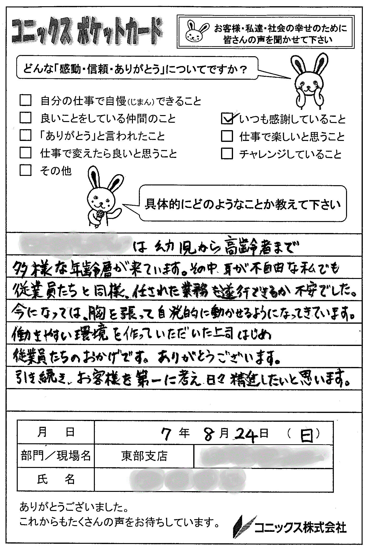 周囲のサポートに感謝しつつ、Uさんも『お客様のために努力し続けたい』という前向きな気持ちが、素敵です。
