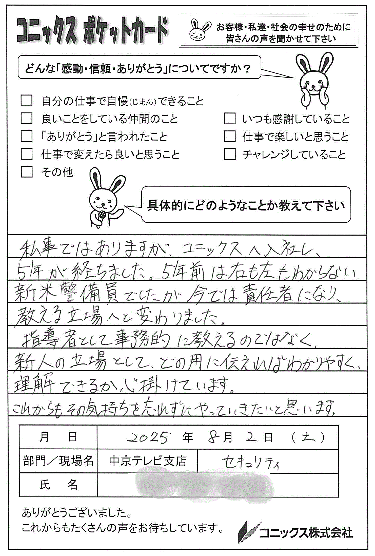 Tさんの5年間の努力と経験を積み重ねてきた証が、“責任者”になったということですね!