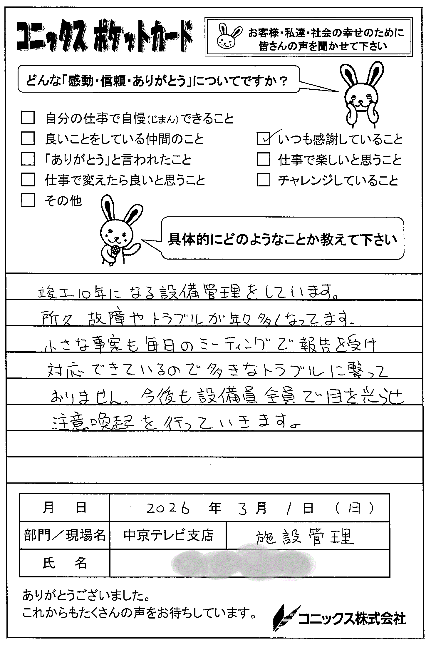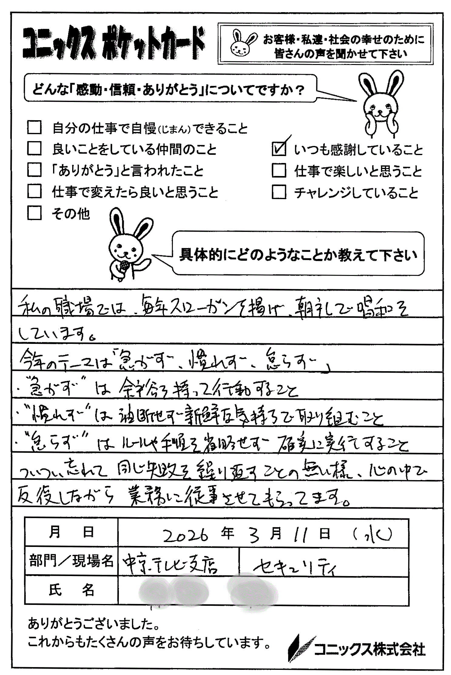 皆さんが同じ思いで業務を遂行する為にも、唱和するのはいいですね!