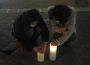 はなみずき広場の上を通るリニモの特別列車をキャンドルの灯りと笑顔で手を振り出迎えました!